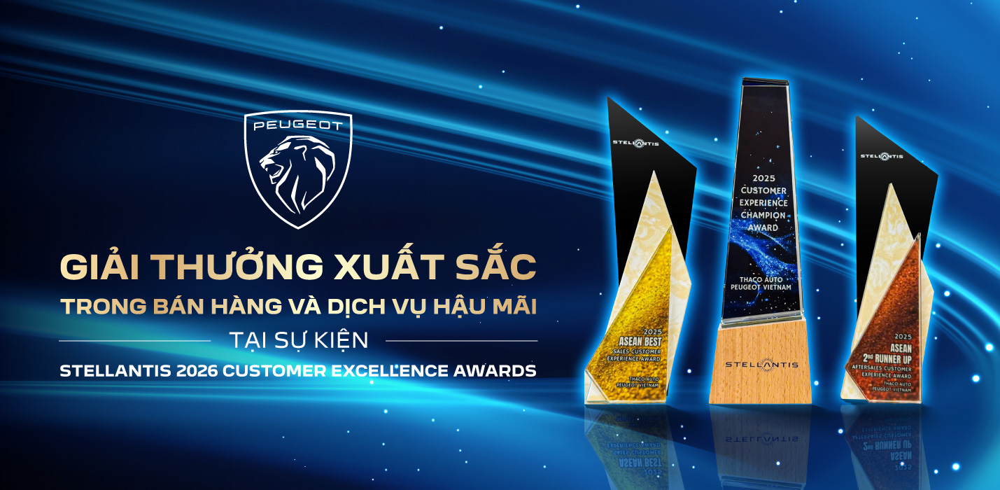 Những nỗ lực bền bỉ trong việc nâng cao trải nghiệm khách hàng của THACO AUTO và Peugeot Việt Nam xuyên suốt năm 2025 đã được ghi nhận bằng những thành quả ấn tượng. Tại lễ trao giải Stellantis 2026 Customer Excellence Awards diễn ra ngày 19/01/2026, Đà Nẵng, THACO AUTO vinh dự được Tập đoàn Stellantis khu vực ASEAN trao tặng 03 giải thưởng về trải nghiệm Khách hàng bao gồm: Giải Vô địch Trải nghiệm khách hàng (Customer Experience Champion Award); Giải Trải nghiệm khách hàng Bán hàng Xuất sắc nhất khu vực ASEAN (ASEAN Best Sales Customer Experience Award) với chỉ số NPS đạt 98,8%; và Giải Ba Trải nghiệm khách hàng Dịch vụ Hậu mãi (2nd Runner-up Aftersales Customer Experience Award) với NPS dịch vụ toàn quốc năm 2025 đạt 95,6%.